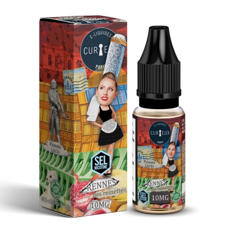 Le e-liquide « Reines des Reinettes » de la marque Curieux en version 10 mL sel de nicotine est un liquide pour cigarette électronique avec une saveur composée de pomme, litchi et fraîcheur. Sa formule est composée de 40% de propylène glycol (PG) végétal et 60% de glycérine végétale (VG). Il est disponible en concentration de nicotine en sel typiquement à 10 mg/mL, avec des options allant aussi jusqu’à 20 mg/mL selon les revendeurs.